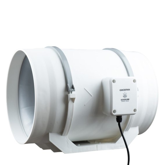 Wentylator kanałowy marki Good Fan to konstrukcja o mieszanym przepływie w połączeniu z silnikiem AC, który napędza wysokiej jakości wirniki. Poprzez zastosowanie tych technik wentylator jest jest bardziej energooszczędny niż inne wentylatory tego typu. Przy mocy zaledwie 230 watów zapewnia silny przepływ powietrza do 2900 m3/h na bardzo niski poziomie hałasu (wytwarza tylko 28 DB). Lekkie łopatki wykonane z tworzywa ABS zmniejszają opór przepływu, co zwiększa przepływ powietrza o 30%.