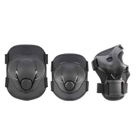 Zestaw ochraniaczy na nadgarstki, łokcie i kolana. Wykonany z wysokiej jakości materiałów. Skorupa zaprojektowana z mocnego i lekkiego tworzywa dobrze wyprofilowana. Wszystkie ochraniacze wyposażone są w zapięcie na rzepy, dzięki czemu utrzymują ochraniacze we właściwym miejscu. Zaprojektowane tak, aby użytkownik czuł się komfortowo i w maksymalnym stopniu zabezpieczał nadgarstki, łokcie i kolana przed urazami.