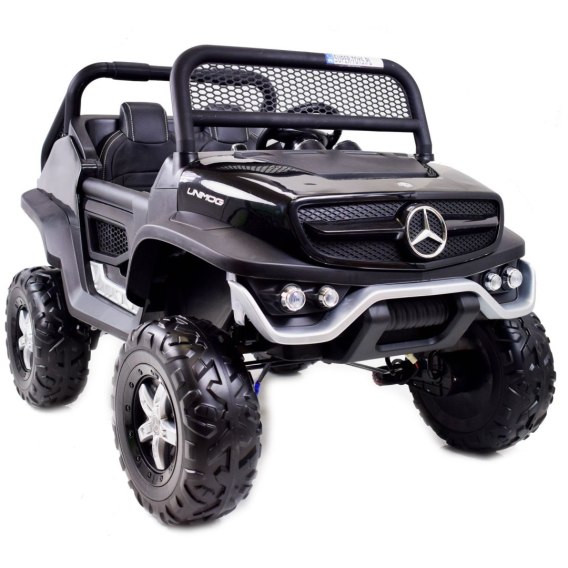 MERCEDES UNIMOG jeden z najlepiej wykonanych pojazdów na akumulator - zasilane na 12 V z napędem na 4 koła - zachwyci nie jednego przyszłego kierowcę. Dzięki zastosowanym najmocniejszym silnikom 45 W, auto jeździ po nierównym terenie bez żadnych problemów, a dodatkowo silniki te są bardzo dobrej jakości. Najciekawszą funkcją pojazdu jest NOWOCZESNY PANEL , SYSTEM WOLNEGO STARTU, AMORTYZATORY oraz SYSTEM HAMOWANIA Z PILOTA .