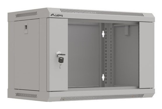 Szafa instalacyjna rack wisząca 19" 6U 540x350 szara drzwi przeszklone Lanberg (Flat Pack)