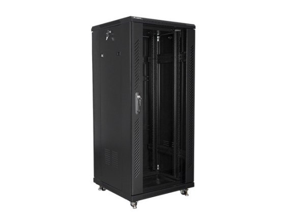 Szafa rack Lanberg FF01-6627-12B (27U; 19''; 1390mm / 600mm / 600 mm; stojąca; Szklane; 800 kg; kolor czarny)