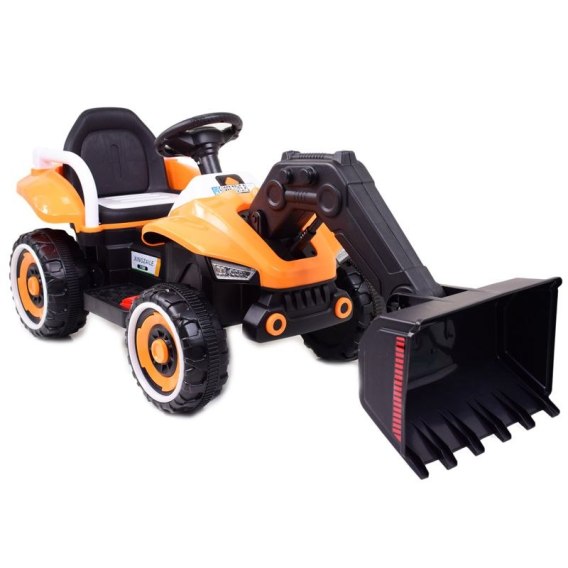 SPYCHACZ NA AKUMULATOR z ruchomą elektryczną łyżką - możliwość jazdy pojazdem za pomocą silnika napędowego oraz sterowania łyżką/góra dółDodatkową atrakcją są wgrane w pamięć piosenki, dźieki oraz klakson.