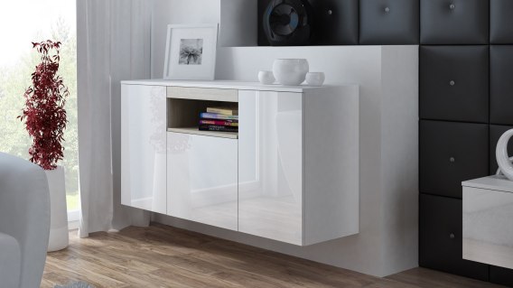 Komoda VIVA 150 biały/ biały połysk+ dąb sonoma