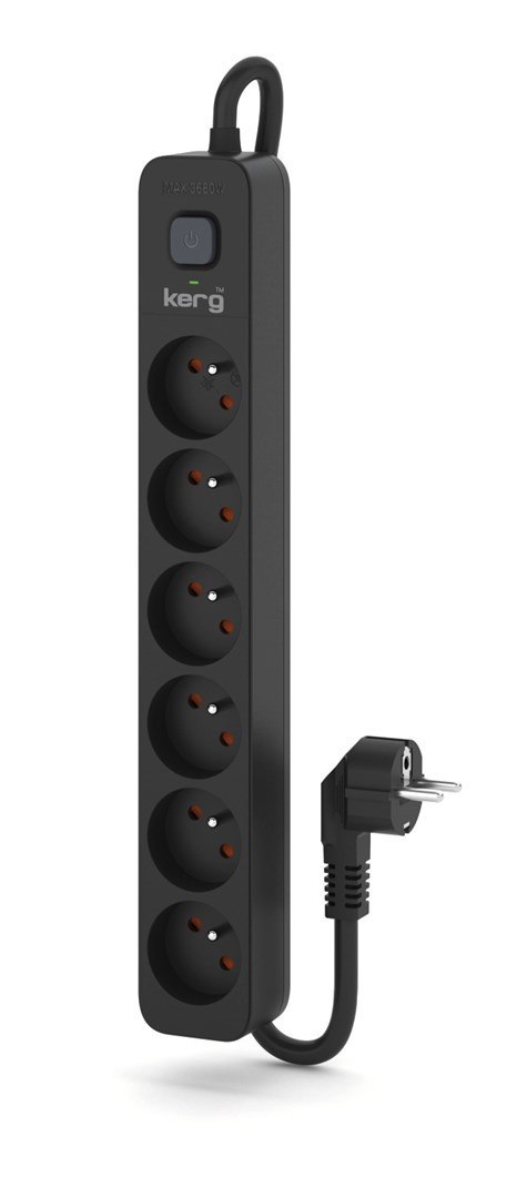Listwa zasilająca KERG z wyłącznikiem-6 gniazd 16A 1,5m ; czarny