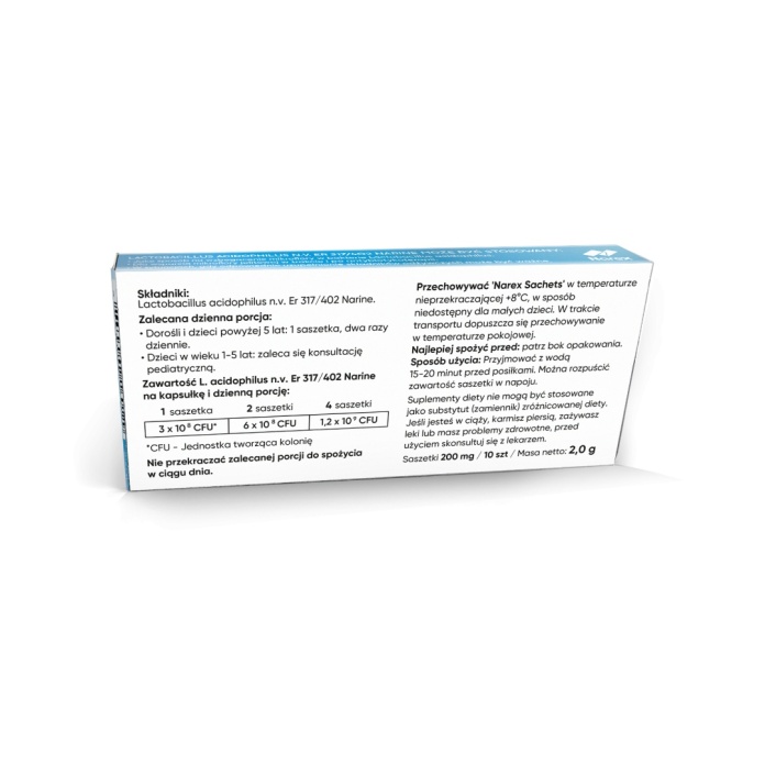 - Lactobacillus acidophilus n.v. Er 317/402 Narine, skrobia kukurydziana; otoczka kapsułki: substancja glazurująca (hydroksypropylometyloceluloza).