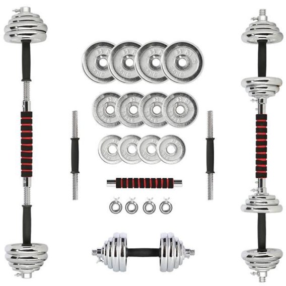 STC21 HMS, zestaw chromowanych sztangielek w walizce, z funkcją sztangi.
