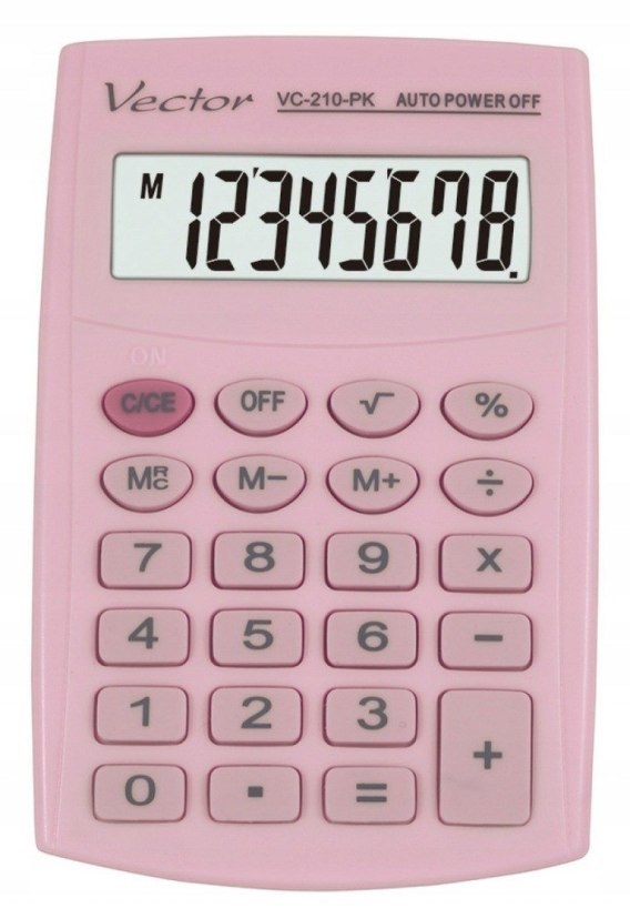 Vector Kalkulator kieszonkow KAV VC-210 PK, 8- cyfrowy ,64x98,5mm, jasnoróżowy